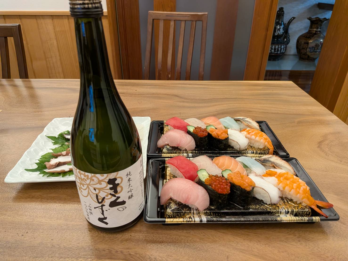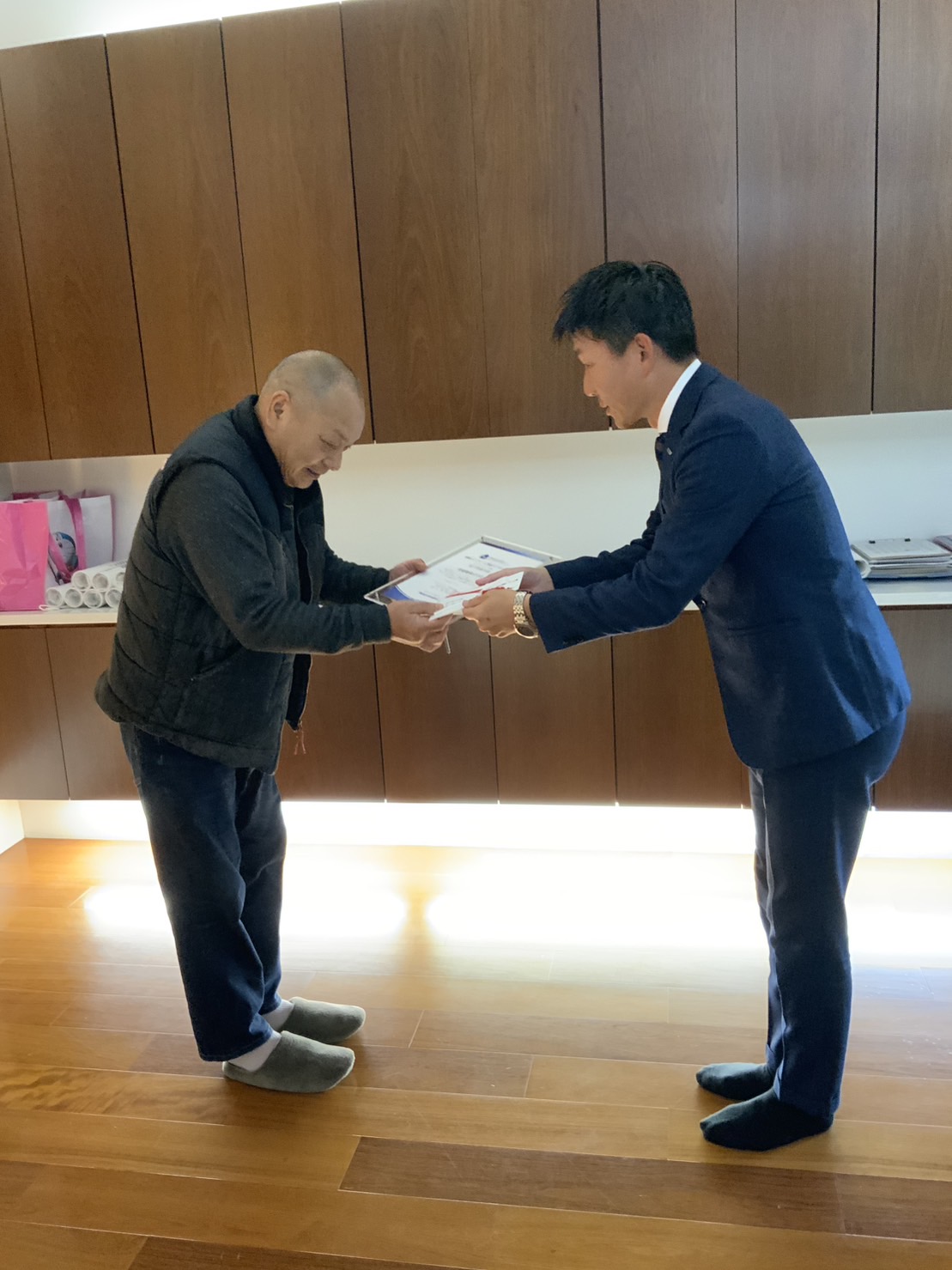 お祝いに今村産業さんからお酒をいただき、ささやかですが祝杯をさせていただきました。