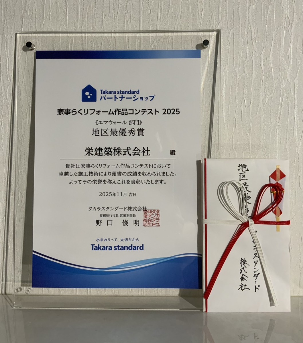 タカラスタンダード「家事らくリフォーム作品コンテスト2025」エマウォール部門地区最優秀賞をいただきました。