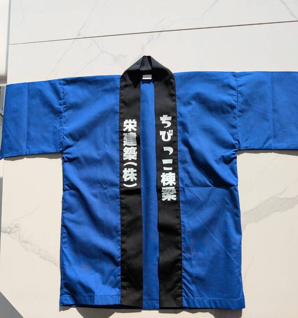 栄建築住宅夢まつり内のイベントで、大工さんと一緒に棟上げ体験をするときに着る、