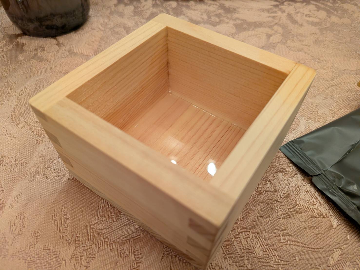 こんな夜は、日本酒の熱燗が美味いけど、お客様からいただいた枡酒を飲んでいます。